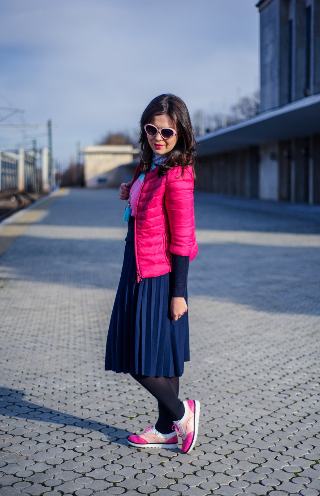 Skirt, jacket: random / Sweater: House / Bag: Michael Kors / Shoes: Pantofi Trendy